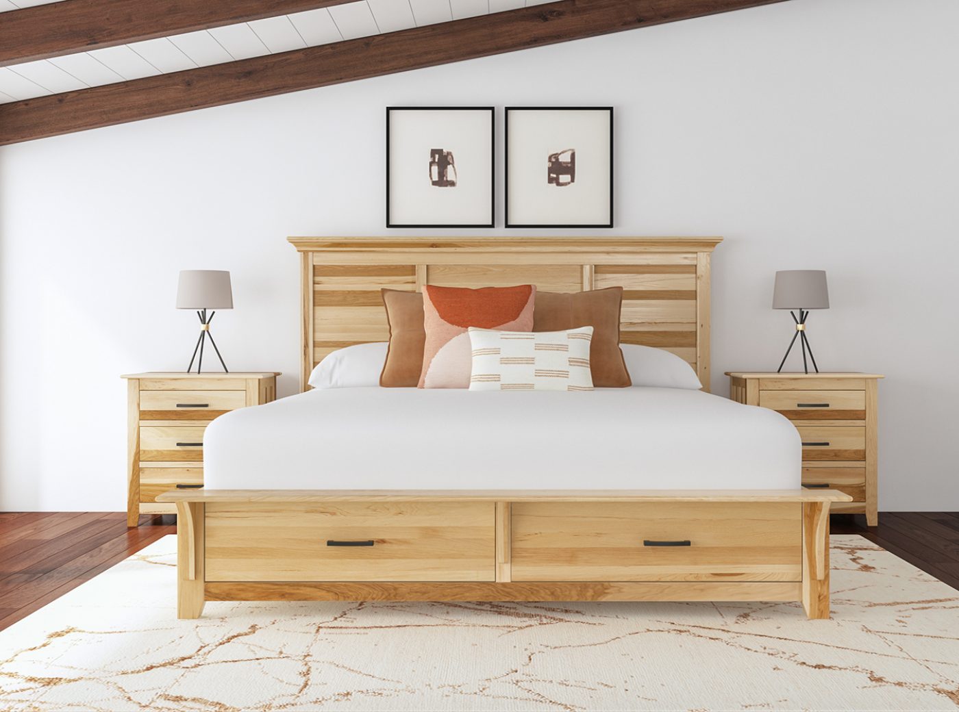 Mixing traditional with a modern touch, the Gallagher Bedroom collection features clean lines, softened with rounded corners and design detailing like the rounded arch on the bed footboard. Constructed with sustainably sourced North American Hickory, this bedroom collection captures the look of elegant simplicity. The multi-dimensioned natural finish accentuates the striations and unique variations of the wood, showcasing the natural beauty only found in hickory.